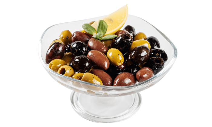 Ассорти из маринованных маслин, оливок и оливок каламата.