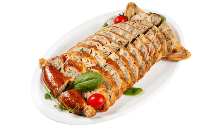 Цыплёнок фаршированный, блинами с начинкой из курицы и шампиньонов .