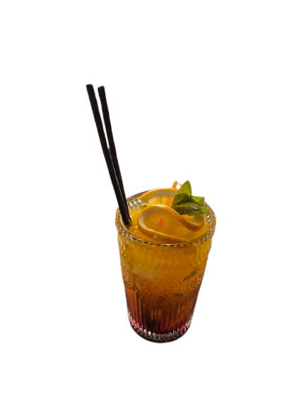 Фреш мандариновый, минеральная вода, сироп ванильный, лимонный фреш