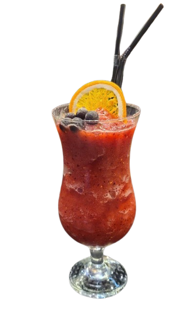Berry smoothie Raspberries, strawberries, currant syrup.