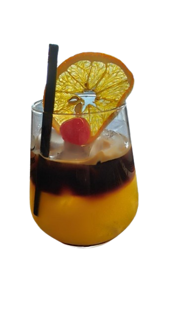 Сок ананаса, апельсин, Сливки, микс сиропов: Кокос, зелен банан, гранат